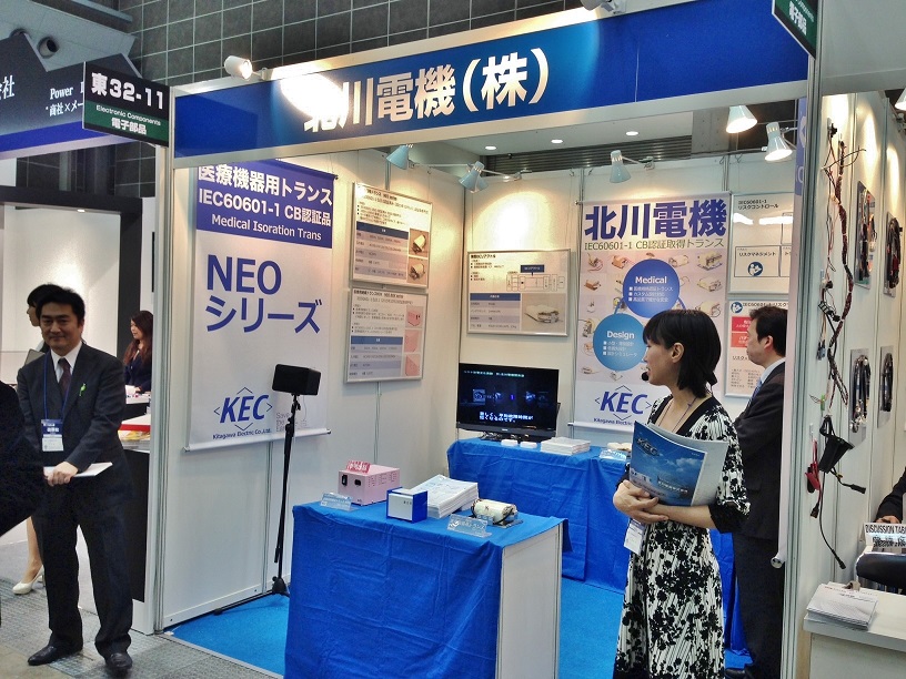 この度は、お忙しいなか「ネプコンジャパン.2015」の 弊社ブースにご来場いただきまして誠にありがとうございました。 三日間の開催模様を簡単ではありますが、ご報告申し上げます。 此度の展示会では、目玉として「医療規格対応トランスBOX」を参考出品致しました。 本製品は、医療現場で使用するPCを始め、その周辺機器のモニター、HDD、プリンター等の 機器に対して、ME機器と同等の安全性をお客様に提供致します。 医療機器用トランスがメインということで、ブースのテーマも「医療規格」に絞り、 医療機器規格 IEC60601-1 第3版 に対応した絶縁トランスのリスクに関する5つの項目について、 わかりやすく解説をしたパネルを展示致しました。 特に皆様の目を引いていたのが、ブース手前に配置した「医療機器用トランスBOX」です。 青と白で統一されたブース内で、淡いピンクのBOXはとても良く目立っていたようです。 北川電機では、安全部品であるトランスの規格認証・対応品の開発では多くの実績があり、 お客様装置の規格申請におけるトランスのリスク低減と開発期間短縮に寄与いたします。 もちろん、トランスに関してもお客様の様々な御要望にお応え致しますので、 どうぞお気軽にお問い合わせください。 この度はたくさんの方々にお越しいただき、誠にありがとうございました。
