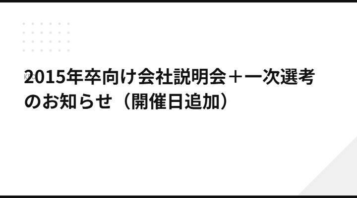 2015年卒向け会社説明会+一次選考のお知らせ(開催日追加)